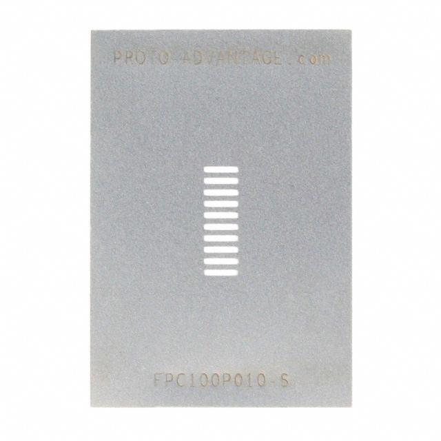 This is manufactured by Chip Quik Inc.. The manufacturer part number is FPC100P010-S. The product is made from highly stable and reliable stainless steel. It is assigned with possible HTSUS value of 7218.10.0000. The product is rohs3 compliant. It is 0.0040" (0.102mm) thick. It comes in fpc/ffc configuration. The product carries possible position value of 10. Outer dimensions are 1.300" l x 0.900" w (33.02mm x 22.86mm). In addition, it is reach unaffected. It is shipped in bulk package . Its typical moisture sensitivity level is 1 (unlimited). The product proto-advantage fpc, is a highly preferred choice for users. The thermal center pad has 0.774" l x 0.157" w (19.65mm x 4.00mm). Moreover, the product is 0.039" (1.00mm). Moreover, it corresponds to fpc100, a base product number of the product. The product is designated with the ear99 code number.