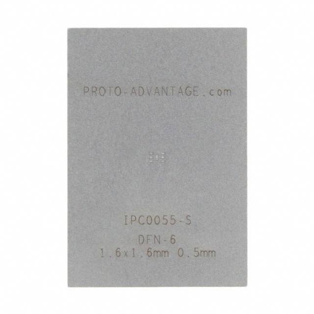 This is manufactured by Chip Quik Inc.. The manufacturer part number is IPC0055-S. The product is made from highly stable and reliable stainless steel. It is assigned with possible HTSUS value of 7218.10.0000. The product is rohs3 compliant. It is 0.0040" (0.102mm) thick. It comes in dfn configuration. The product carries possible position value of 6. Outer dimensions are 1.300" l x 0.900" w (33.02mm x 22.86mm). Inner dimensions include - [Inner Dimensions]. In addition, it is reach unaffected. It is shipped in bulk package . Its typical moisture sensitivity level is 1 (unlimited). The product proto-advantage ipc, is a highly preferred choice for users. The thermal center pad has 0.039" l x 0.018" w (1.00mm x 0.45mm). Moreover, the product is 0.020" (0.50mm). The product is designated with the ear99 code number.