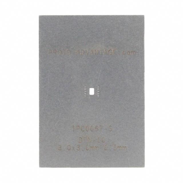 This is manufactured by Chip Quik Inc.. The manufacturer part number is IPC0067-S. The product is made from highly stable and reliable stainless steel. It is assigned with possible HTSUS value of 7218.10.0000. The product is rohs3 compliant. It is 0.0040" (0.102mm) thick. It comes in dfn configuration. The product carries possible position value of 10. Outer dimensions are 1.300" l x 0.900" w (33.02mm x 22.86mm). Inner dimensions include - [Inner Dimensions]. In addition, it is reach unaffected. It is shipped in bulk package . Its typical moisture sensitivity level is 1 (unlimited). It has a long 2 weeks standard lead time. The product proto-advantage ipc, is a highly preferred choice for users. The thermal center pad has 0.079" l x 0.059" w (2.00mm x 1.50mm). Moreover, the product is 0.020" (0.50mm). The product is designated with the ear99 code number.
