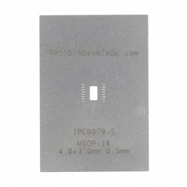 This is manufactured by Chip Quik Inc.. The manufacturer part number is IPC0079-S. The product is made from highly stable and reliable stainless steel. It is assigned with possible HTSUS value of 7218.10.0000. The product is rohs3 compliant. It is 0.0040" (0.102mm) thick. It comes in msop configuration. The product carries possible position value of 16. Outer dimensions are 1.300" l x 0.900" w (33.02mm x 22.86mm). Inner dimensions include - [Inner Dimensions]. In addition, it is reach unaffected. It is shipped in bulk package . Its typical moisture sensitivity level is 1 (unlimited). It has a long 2 weeks standard lead time. The product proto-advantage ipc, is a highly preferred choice for users. The thermal center pad has 0.118" l x 0.063" w (3.00mm x 1.60mm). Moreover, the product is 0.020" (0.50mm). The product is designated with the ear99 code number.