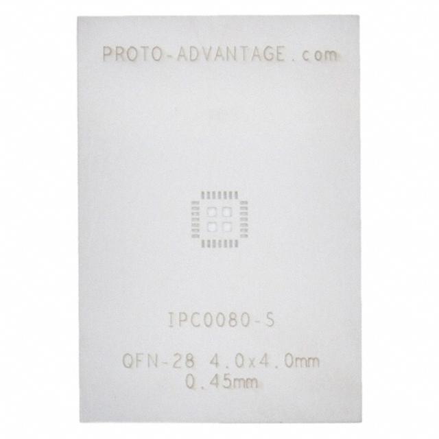 This is manufactured by Chip Quik Inc.. The manufacturer part number is IPC0080-S. The product is made from highly stable and reliable stainless steel. It is assigned with possible HTSUS value of 7218.10.0000. The product is rohs3 compliant. It is 0.0040" (0.102mm) thick. It comes in qfn/lfcsp configuration. The product carries possible position value of 28. Outer dimensions are 1.300" l x 0.900" w (33.02mm x 22.86mm). Inner dimensions include - [Inner Dimensions]. In addition, it is reach unaffected. The chip quik inc.'s product offers user-desired applications. Its typical moisture sensitivity level is 1 (unlimited). It has a long 2 weeks standard lead time. The product proto-advantage ipc, is a highly preferred choice for users. In addition, bulk is the available packaging type of the product. The thermal center pad has 0.094" l x 0.094" w (2.40mm x 2.40mm). Moreover, the product is 0.018" (0.45mm). The product is designated with the ear99 code number.