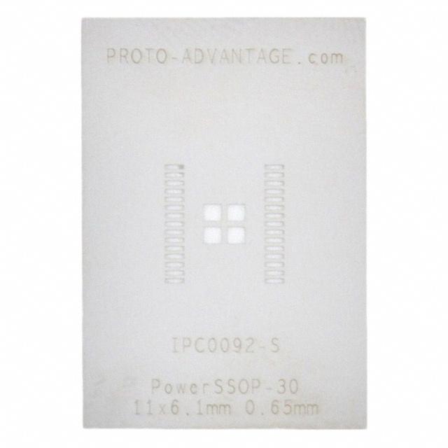This is manufactured by Chip Quik Inc.. The manufacturer part number is IPC0092-S. The product is made from highly stable and reliable stainless steel. It is assigned with possible HTSUS value of 7218.10.0000. The product is rohs3 compliant. It is 0.0040" (0.102mm) thick. It comes in powerssop configuration. The product carries possible position value of 30. Outer dimensions are 1.300" l x 0.900" w (33.02mm x 22.86mm). Inner dimensions include - [Inner Dimensions]. In addition, it is reach unaffected. It is shipped in bulk package . Its typical moisture sensitivity level is 1 (unlimited). The product proto-advantage ipc, is a highly preferred choice for users. The thermal center pad has 0.162" l x 0.154" w (4.11mm x 3.91mm). Moreover, the product is 0.026" (0.65mm). The product is designated with the ear99 code number.