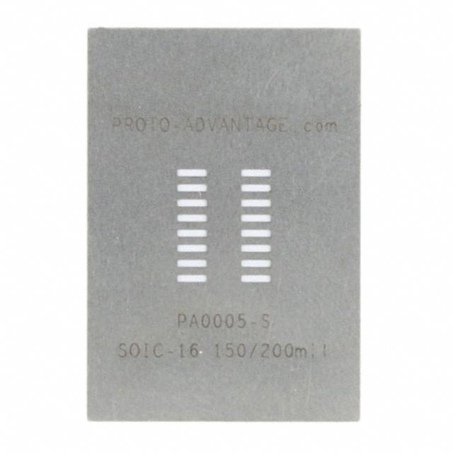 This is manufactured by Chip Quik Inc.. The manufacturer part number is PA0005-S. The product is made from highly stable and reliable stainless steel. It is assigned with possible HTSUS value of 7218.10.0000. The product is rohs3 compliant. It is 0.0040" (0.102mm) thick. It comes in soic configuration. The product carries possible position value of 16. Outer dimensions are 1.300" l x 0.900" w (33.02mm x 22.86mm). In addition, it is reach unaffected. It is shipped in bulk package . Its typical moisture sensitivity level is 1 (unlimited). It has a long 2 weeks standard lead time. The product proto-advantage pa, is a highly preferred choice for users. Moreover, the product is 0.050" (1.27mm). Moreover, it corresponds to pa0005, a base product number of the product. The product is designated with the ear99 code number.