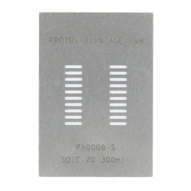 This is manufactured by Chip Quik Inc.. The manufacturer part number is PA0008-S. The product is made from highly stable and reliable stainless steel. It is assigned with possible HTSUS value of 7218.10.0000. The product is rohs3 compliant. It is 0.0040" (0.102mm) thick. It comes in soic configuration. The product carries possible position value of 20. Outer dimensions are 1.300" l x 0.900" w (33.02mm x 22.86mm). In addition, it is reach unaffected. It is shipped in bulk package . Its typical moisture sensitivity level is 1 (unlimited). It has a long 2 weeks standard lead time. The product proto-advantage pa, is a highly preferred choice for users. Moreover, the product is 0.050" (1.27mm). Moreover, it corresponds to pa0008, a base product number of the product. The product is designated with the ear99 code number.