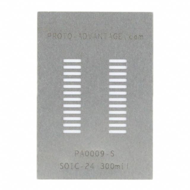 This is manufactured by Chip Quik Inc.. The manufacturer part number is PA0009-S. The product is made from highly stable and reliable stainless steel. It is assigned with possible HTSUS value of 7218.10.0000. The product is rohs3 compliant. It is 0.0040" (0.102mm) thick. It comes in soic configuration. The product carries possible position value of 24. Outer dimensions are 1.300" l x 0.900" w (33.02mm x 22.86mm). In addition, it is reach unaffected. The chip quik inc.'s product offers user-desired applications. Its typical moisture sensitivity level is 1 (unlimited). It has a long 2 weeks standard lead time. The product proto-advantage pa, is a highly preferred choice for users. In addition, bulk is the available packaging type of the product. Moreover, the product is 0.050" (1.27mm). Moreover, it corresponds to pa0009, a base product number of the product. The product is designated with the ear99 code number.