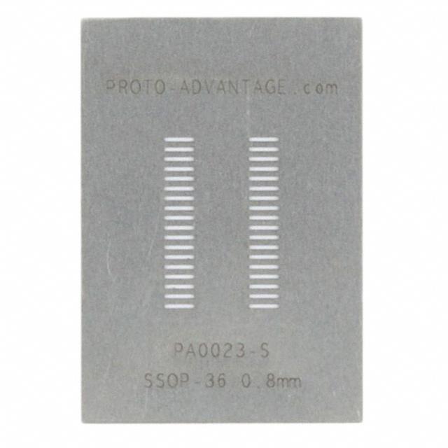 This is manufactured by Chip Quik Inc.. The manufacturer part number is PA0023-S. The product is made from highly stable and reliable stainless steel. It is assigned with possible HTSUS value of 7218.10.0000. The product is rohs3 compliant. It is 0.0040" (0.102mm) thick. It comes in ssop configuration. The product carries possible position value of 36. Outer dimensions are 1.300" l x 0.900" w (33.02mm x 22.86mm). In addition, it is reach unaffected. It is shipped in bulk package . Its typical moisture sensitivity level is 1 (unlimited). The product proto-advantage pa, is a highly preferred choice for users. Moreover, the product is 0.031" (0.80mm). The product is designated with the ear99 code number.