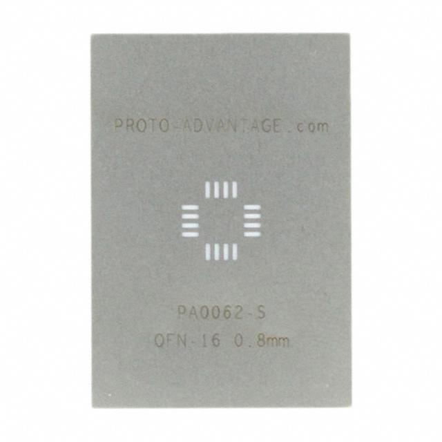 This is manufactured by Chip Quik Inc.. The manufacturer part number is PA0062-S. The product is made from highly stable and reliable stainless steel. It is assigned with possible HTSUS value of 7218.10.0000. The product is rohs3 compliant. It is 0.0040" (0.102mm) thick. It comes in qfn/lfcsp configuration. The product carries possible position value of 16. Outer dimensions are 1.300" l x 0.900" w (33.02mm x 22.86mm). Inner dimensions include - [Inner Dimensions]. In addition, it is reach unaffected. It is shipped in bulk package . Its typical moisture sensitivity level is 1 (unlimited). The product proto-advantage pa, is a highly preferred choice for users. Moreover, the product is 0.031" (0.80mm). The product is designated with the ear99 code number.