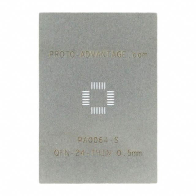 This is manufactured by Chip Quik Inc.. The manufacturer part number is PA0064-S. The product is made from highly stable and reliable stainless steel. It is assigned with possible HTSUS value of 7218.10.0000. The product is rohs3 compliant. It is 0.0040" (0.102mm) thick. It comes in qfn/lfcsp configuration. The product carries possible position value of 24. Outer dimensions are 1.300" l x 0.900" w (33.02mm x 22.86mm). Inner dimensions include - [Inner Dimensions]. In addition, it is reach unaffected. It is shipped in bulk package . Its typical moisture sensitivity level is 1 (unlimited). The product proto-advantage pa, is a highly preferred choice for users. Moreover, the product is 0.020" (0.50mm). Moreover, it corresponds to pa0064, a base product number of the product. The product is designated with the ear99 code number.