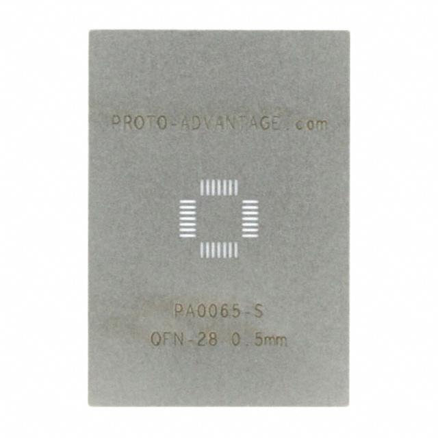 This is manufactured by Chip Quik Inc.. The manufacturer part number is PA0065-S. The product is made from highly stable and reliable stainless steel. It is assigned with possible HTSUS value of 7218.10.0000. The product is rohs3 compliant. It is 0.0040" (0.102mm) thick. It comes in qfn/lfcsp configuration. The product carries possible position value of 28. Outer dimensions are 1.300" l x 0.900" w (33.02mm x 22.86mm). Inner dimensions include - [Inner Dimensions]. In addition, it is reach unaffected. The chip quik inc.'s product offers user-desired applications. Its typical moisture sensitivity level is 1 (unlimited). It has a long 2 weeks standard lead time. The product proto-advantage pa, is a highly preferred choice for users. In addition, bulk is the available packaging type of the product. Moreover, the product is 0.020" (0.50mm). The product is designated with the ear99 code number.