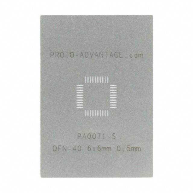This is manufactured by Chip Quik Inc.. The manufacturer part number is PA0071-S. The product is made from highly stable and reliable stainless steel. It is assigned with possible HTSUS value of 7218.10.0000. The product is rohs3 compliant. It is 0.0040" (0.102mm) thick. It comes in qfn/lfcsp configuration. The product carries possible position value of 40. Outer dimensions are 1.300" l x 0.900" w (33.02mm x 22.86mm). Inner dimensions include - [Inner Dimensions]. In addition, it is reach unaffected. It is shipped in bulk package . Its typical moisture sensitivity level is 1 (unlimited). The product proto-advantage pa, is a highly preferred choice for users. Moreover, the product is 0.020" (0.50mm). The product is designated with the ear99 code number.