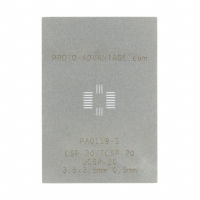 This is manufactured by Chip Quik Inc.. The manufacturer part number is PA0119-S. The product is made from highly stable and reliable stainless steel. It is assigned with possible HTSUS value of 7218.10.0000. The product is rohs3 compliant. It is 0.0040" (0.102mm) thick. It comes in csp configuration. The product carries possible position value of 20. Outer dimensions are 1.300" l x 0.900" w (33.02mm x 22.86mm). Inner dimensions include - [Inner Dimensions]. In addition, it is reach unaffected. The chip quik inc.'s product offers user-desired applications. Its typical moisture sensitivity level is 1 (unlimited). It has a long 2 weeks standard lead time. The product proto-advantage pa, is a highly preferred choice for users. In addition, bulk is the available packaging type of the product. Moreover, the product is 0.020" (0.50mm). The product is designated with the ear99 code number.
