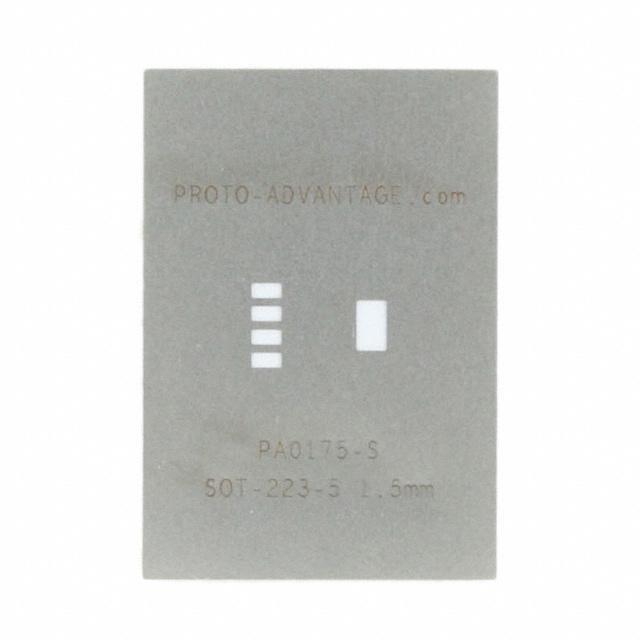 This is manufactured by Chip Quik Inc.. The manufacturer part number is PA0175-S. The product is made from highly stable and reliable stainless steel. It is assigned with possible HTSUS value of 7218.10.0000. The product is rohs3 compliant. It is 0.0040" (0.102mm) thick. It comes in sot/sc configuration. The product carries possible position value of 4. Outer dimensions are 1.300" l x 0.900" w (33.02mm x 22.86mm). Inner dimensions include - [Inner Dimensions]. In addition, it is reach unaffected. The chip quik inc.'s product offers user-desired applications. Its typical moisture sensitivity level is 1 (unlimited). It has a long 2 weeks standard lead time. The product proto-advantage pa, is a highly preferred choice for users. In addition, bulk is the available packaging type of the product. The thermal center pad has 0.130" l x 0.079" w (3.30mm x 2.00mm). Moreover, the product is 0.059" (1.50mm). The product is designated with the ear99 code number.