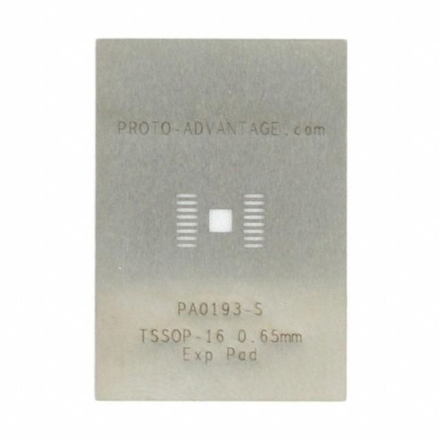 This is manufactured by Chip Quik Inc.. The manufacturer part number is PA0193-S. The product is made from highly stable and reliable stainless steel. It is assigned with possible HTSUS value of 7218.10.0000. The product is rohs3 compliant. It is 0.0040" (0.102mm) thick. It comes in tssop configuration. The product carries possible position value of 16. Outer dimensions are 1.300" l x 0.900" w (33.02mm x 22.86mm). Inner dimensions include - [Inner Dimensions]. In addition, it is reach unaffected. It is shipped in bulk package . Its typical moisture sensitivity level is 1 (unlimited). The product proto-advantage pa, is a highly preferred choice for users. The thermal center pad has 0.433" l x 0.118" w (11.00mm x 3.00mm). Moreover, the product is 0.026" (0.65mm). The product is designated with the ear99 code number.