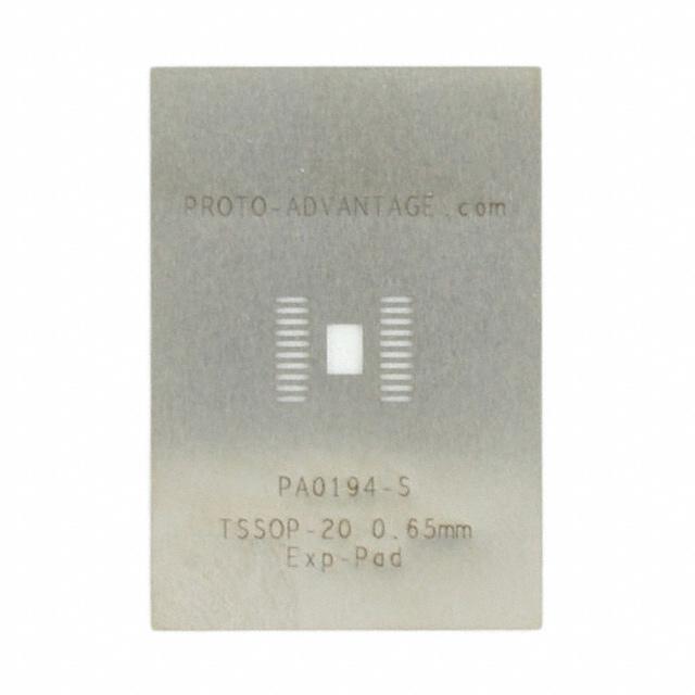 This is manufactured by Chip Quik Inc.. The manufacturer part number is PA0194-S. The product is made from highly stable and reliable stainless steel. It is assigned with possible HTSUS value of 7218.10.0000. The product is rohs3 compliant. It is 0.0040" (0.102mm) thick. It comes in tssop configuration. The product carries possible position value of 20. Outer dimensions are 1.300" l x 0.900" w (33.02mm x 22.86mm). Inner dimensions include - [Inner Dimensions]. In addition, it is reach unaffected. The chip quik inc.'s product offers user-desired applications. Its typical moisture sensitivity level is 1 (unlimited). It has a long 2 weeks standard lead time. The product proto-advantage pa, is a highly preferred choice for users. In addition, bulk is the available packaging type of the product. The thermal center pad has 0.492" l x 0.118" w (12.50mm x 3.00mm). Moreover, the product is 0.026" (0.65mm). The product is designated with the ear99 code number.