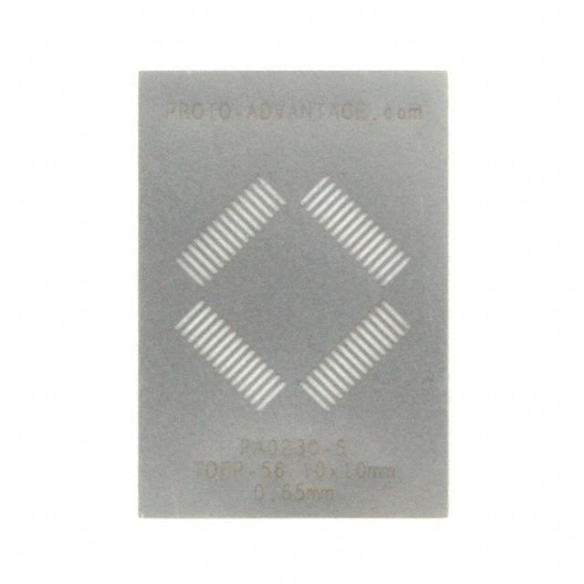 This is manufactured by Chip Quik Inc.. The manufacturer part number is PA0230-S. The product is made from highly stable and reliable stainless steel. It is assigned with possible HTSUS value of 7218.10.0000. The product is rohs3 compliant. It is 0.0040" (0.102mm) thick. It comes in tqfp configuration. The product carries possible position value of 56. Outer dimensions are 1.300" l x 0.900" w (33.02mm x 22.86mm). Inner dimensions include - [Inner Dimensions]. In addition, it is reach unaffected. The chip quik inc.'s product offers user-desired applications. Its typical moisture sensitivity level is 1 (unlimited). It has a long 2 weeks standard lead time. The product proto-advantage pa, is a highly preferred choice for users. In addition, bulk is the available packaging type of the product. Moreover, the product is 0.026" (0.65mm). The product is designated with the ear99 code number.