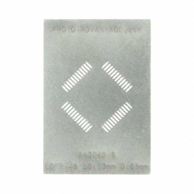 This is manufactured by Chip Quik Inc.. The manufacturer part number is PA0240-S. The product is made from highly stable and reliable stainless steel. It is assigned with possible HTSUS value of 7218.10.0000. The product is rohs3 compliant. It is 0.0040" (0.102mm) thick. It comes in lqfp configuration. The product carries possible position value of 48. Outer dimensions are 1.300" l x 0.900" w (33.02mm x 22.86mm). Inner dimensions include - [Inner Dimensions]. In addition, it is reach unaffected. The chip quik inc.'s product offers user-desired applications. Its typical moisture sensitivity level is 1 (unlimited). It has a long 2 weeks standard lead time. The product proto-advantage pa, is a highly preferred choice for users. In addition, bulk is the available packaging type of the product. Moreover, the product is 0.026" (0.65mm). The product is designated with the ear99 code number.