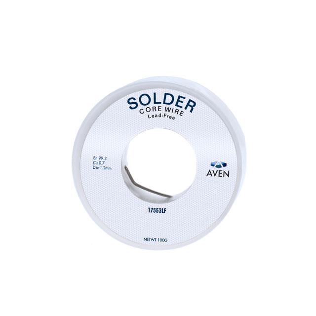 This is manufactured by Aven Tools. The manufacturer part number is 17553LF. It is assigned with possible HTSUS value of 8311.30.6000. The product is rohs3 compliant. It comes in wire solder configuration. It is composed of sn99.3cu0.7 (99.3/0.7). It has a melting point of 440°f (227°c). The product is designed as a nice spool, 3.53 oz (100g). In addition, it is reach unaffected. It is shipped in spool package . Moreover, the product has a wire gauge of 17 awg, 18 swg. Its typical moisture sensitivity level is not applicable. Its diameter is 0.047" (1.19mm). It is a lead free process. It is a rosin activated (ra) flux. Moreover, it corresponds to 17553, a base product number of the product. The product is designated with the ear99 code number.