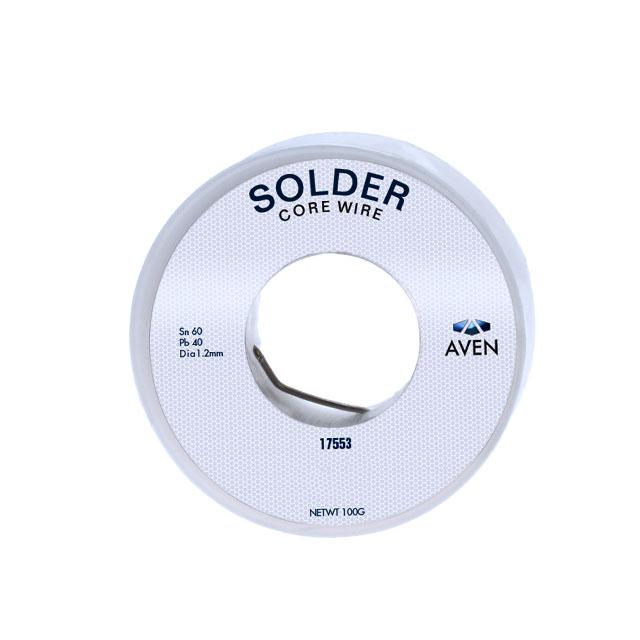This is manufactured by Aven Tools. The manufacturer part number is 17553. It is assigned with possible HTSUS value of 8311.30.3000. The product is not applicable. It comes in wire solder configuration. It is composed of sn60pb40 (60/40). It has a melting point of 360°f (180°c). The product is designed as a nice spool, 3.53 oz (100g). In addition, it is reach unaffected. It is shipped in spool package . Moreover, the product has a wire gauge of 17 awg, 18 swg. Its typical moisture sensitivity level is not applicable. It has a long 4 weeks standard lead time. Its diameter is 0.047" (1.19mm). The typical product's weight is 1 lb (453.59 g). It is a leaded process. It is a rosin activated (ra) flux. The product is designated with the ear99 code number.