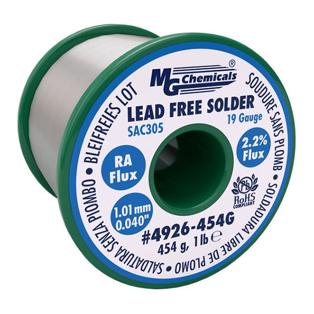 This is manufactured by MG Chemicals. The manufacturer part number is 4926-454G. It is assigned with possible HTSUS value of 8311.30.6000. The product is rohs3 compliant. The product is highly reliable with a long-lasting period of 60 months. It comes in wire solder configuration. It is composed of sn96.5ag3cu0.5 (96.5/3/0.5). It has a melting point of 423 ~ 430°f (217 ~ 221°c). The product is designed as a nice spool, 1 lb (454 g). In addition, it is reach unaffected. Its warranty starts from date of manufacture. It offers storage features at 65°f ~ 80°f (18°c ~ 27°c). The mg chemicals's product offers user-desired applications. Moreover, the product has a wire gauge of 18 awg, 19 swg. Its typical moisture sensitivity level is not applicable. Its diameter is 0.040" (1.02mm). It is a lead free process. The product 4926, is a highly preferred choice for users. It is a rosin activated (ra) flux. In addition, spool is the available packaging type of the product. The product is designated with the ear99 code number.