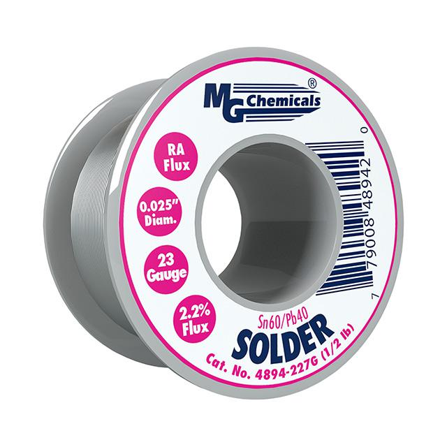This is manufactured by MG Chemicals. The manufacturer part number is 4894-227G. It is assigned with possible HTSUS value of 8311.30.3000. The product is rohs non-compliant. The product is highly reliable with a long-lasting period of 60 months. It comes in wire solder configuration. It is composed of sn60pb40 (60/40). It has a melting point of 361 ~ 376°f (183 ~ 191°c). The product is designed as a nice spool, 8 oz (227g), 1/2 lb. In addition, it is reach affected. Its warranty starts from date of manufacture. It offers storage features at 50°f ~ 86°f (10°c ~ 30°c). The mg chemicals's product offers user-desired applications. Moreover, the product has a wire gauge of 22 awg, 23 swg. Its typical moisture sensitivity level is not applicable. It has a long 2 weeks standard lead time. Its diameter is 0.025" (0.64mm). The typical product's weight is 0.5 lb (226.8 g). It is a leaded process. The product 4890, is a highly preferred choice for users. It is a rosin activated (ra) flux. In addition, spool is the available packaging type of the product. Moreover, it corresponds to 4894, a base product number of the product. The product is designated with the ear99 code number.