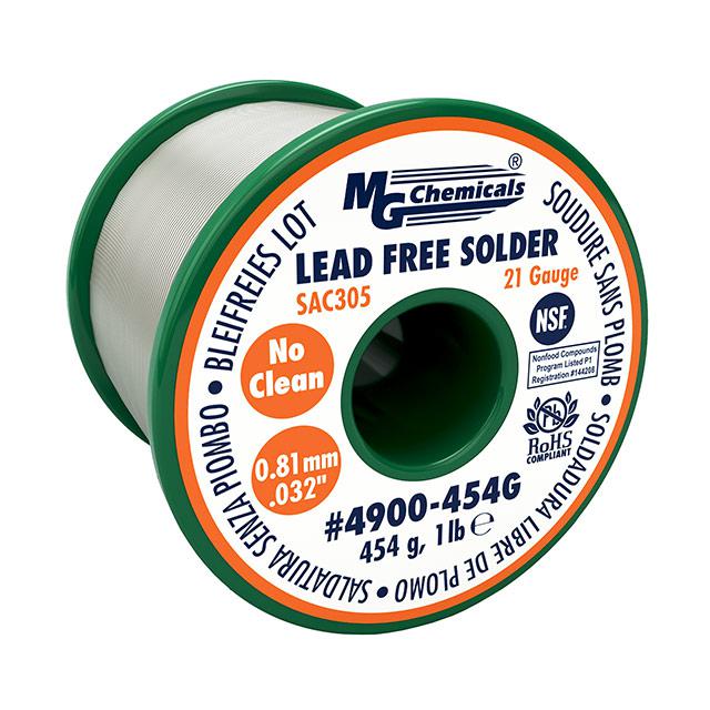 This is manufactured by MG Chemicals. The manufacturer part number is 4900-454G. The overall weight of the product is about 454g . The product is in wire form . The wire has 0.81mm diameter. It is a resin flux. It includes 3% silver . solder is a versatile product designed to provide user-defined applications. Contents Include: silver. It is assigned with possible HTSUS value of 8311.30.6000. The product is rohs3 compliant. The product is highly reliable with a long-lasting period of 60 months. It comes in wire solder configuration. It is composed of sn96.2ag2.8cu0.4 (96.2/2.8/0.4). It has a melting point of 423 ~ 430°f (217 ~ 221°c). The product is designed as a nice spool, 1 lb (454 g). In addition, it is reach unaffected. Its warranty starts from date of manufacture. It offers storage features at 50°f ~ 86°f (10°c ~ 30°c). The mg chemicals's product offers user-desired applications. Moreover, the product has a wire gauge of 20 awg, 21 swg. Its typical moisture sensitivity level is not applicable. It has a long 2 weeks standard lead time. Its diameter is 0.032" (0.81mm). It is a lead free process. The product 4900, is a highly preferred choice for users. It is a no-clean flux. In addition, spool is the available packaging type of the product. Moreover, it corresponds to 4900, a base product number of the product. The product is designated with the ear99 code number.