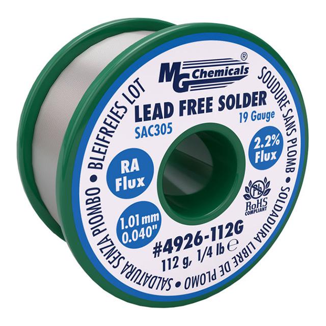 This is manufactured by MG Chemicals. The manufacturer part number is 4926-112G. It is assigned with possible HTSUS value of 8311.30.6000. The product is rohs3 compliant. The product is highly reliable with a long-lasting period of 60 months. It comes in wire solder configuration. It is composed of sn96.5ag3cu0.5 (96.5/3/0.5). It has a melting point of 423 ~ 430°f (217 ~ 221°c). The product is designed as a nice spool, 4 oz (113.40g). In addition, it is reach unaffected. Its warranty starts from date of manufacture. It offers storage features at 65°f ~ 80°f (18°c ~ 27°c). The mg chemicals's product offers user-desired applications. Moreover, the product has a wire gauge of 18 awg, 19 swg. Its typical moisture sensitivity level is not applicable. Its diameter is 0.040" (1.02mm). It is a lead free process. The product 4926, is a highly preferred choice for users. It is a rosin activated (ra) flux. In addition, spool is the available packaging type of the product. The product is designated with the ear99 code number.