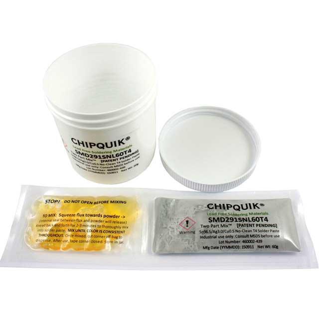 This is manufactured by Chip Quik Inc.. The manufacturer part number is SMD291SNL60T4. It is assigned with possible HTSUS value of 8311.30.6000. The product is rohs3 compliant. The product is highly reliable with a long-lasting period of 24 months. It comes in solder paste, two part mix configuration. It is composed of sn96.5ag3cu0.5 (96.5/3/0.5). It has a melting point of 423 ~ 428°f (217 ~ 220°c). The product is designed as a nice jar, 2.12 oz (60g). In addition, it is reach unaffected. Its warranty starts from date of manufacture. It offers storage features at 37°f ~ 77°f (3°c ~ 25°c). It is shipped in jar package . Its typical moisture sensitivity level is not applicable. It has a long 4 weeks standard lead time. It is a lead free process. It is a no-clean flux. The mesh is a 4 type of mesh. Moreover, it corresponds to smd291, a base product number of the product. The product is designated with the ear99 code number.