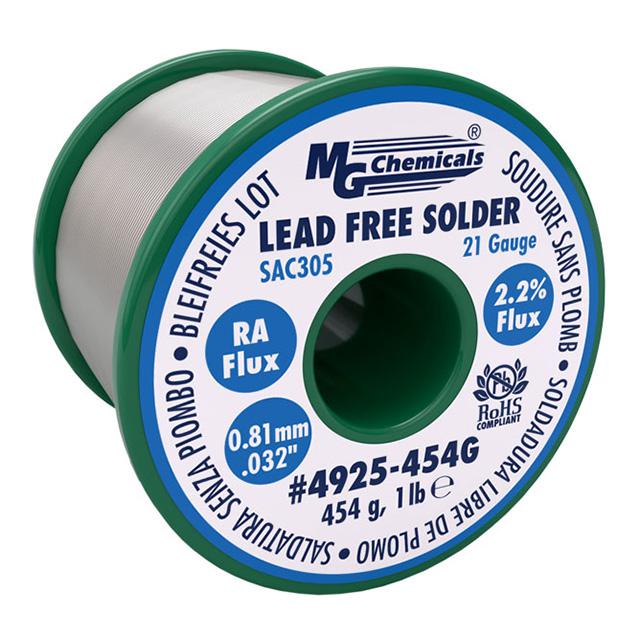 This is manufactured by MG Chemicals. The manufacturer part number is 4925-454G. It is assigned with possible HTSUS value of 8311.30.6000. The product is rohs3 compliant. The product is highly reliable with a long-lasting period of 60 months. It comes in wire solder configuration. It is composed of sn96.5ag3cu0.5 (96.5/3/0.5). It has a melting point of 423 ~ 430°f (217 ~ 221°c). The product is designed as a nice spool, 1 lb (454 g). In addition, it is reach unaffected. Its warranty starts from date of manufacture. It offers storage features at 50°f ~ 86°f (10°c ~ 30°c). The mg chemicals's product offers user-desired applications. Moreover, the product has a wire gauge of 20 awg, 21 swg. Its typical moisture sensitivity level is not applicable. Its diameter is 0.032" (0.81mm). It is a lead free process. The product 4926, is a highly preferred choice for users. It is a rosin activated (ra) flux. In addition, spool is the available packaging type of the product. The product is designated with the ear99 code number.