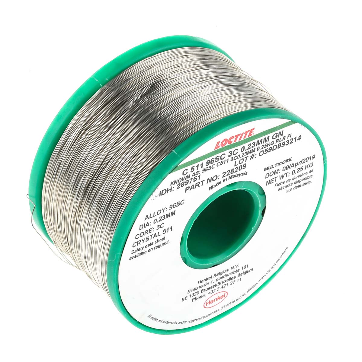 This is 0.23mm Wire Lead Free Solder 217°C Melting Point 0.7% Copper 95.5% Tin 3.8% Silver 250g manufactured by Multicore. The manufacturer part number is 289751. It has 95.5% tin . It is made using 0% lead . It has a melting point of 217°c. The product is in wire form . It includes 0.7% of copper . The wire has 0.23mm diameter. It has a model number c511. It is a activated rosin flux. It includes 3.8% silver . Its flux content is about 2% . The overall weight of the product is about 250g .