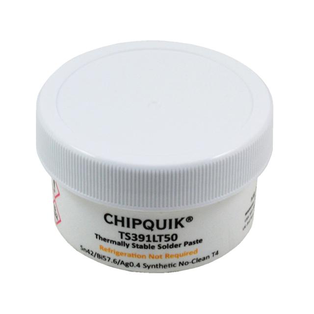 This is manufactured by Chip Quik Inc.. The manufacturer part number is TS391LT50. It is assigned with possible HTSUS value of 3810.10.0000. The product is rohs3 compliant. The product is highly reliable with a long-lasting period of 12 months. It comes in solder paste configuration. It is composed of bi57.6sn42ag0.4 (57.6/42/0.4). It has a melting point of 281°f (138°c). The product is designed as a nice jar, 1.76 oz (50g). In addition, it is reach unaffected. Its warranty starts from date of manufacture. It offers storage features at 68°f ~ 77°f (20°c ~ 25°c). The chip quik inc.'s product offers user-desired applications. Its typical moisture sensitivity level is not applicable. It has a long 3 weeks standard lead time. It is a lead free process. It is a no-clean flux. In addition, bulk is the available packaging type of the product. The mesh is a 4 type of mesh. Moreover, it corresponds to ts391l, a base product number of the product. The product is designated with the ear99 code number.