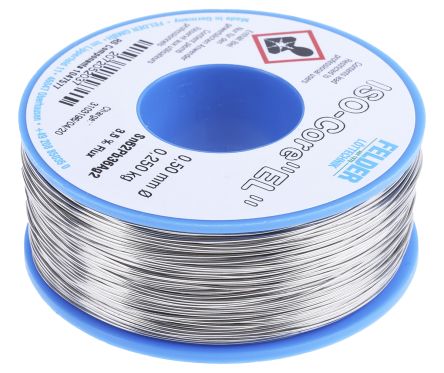 This is 0.5mm Wire Lead solder +179°C Melting Point manufactured by Felder Lottechnik. The manufacturer part number is 20.720.52037. It has 62% tin . It is made using 36% lead . It has a melting point of 179°c. The product is in wire form . The wire has 0.5mm diameter. It has a model number iso-core el. It is a rosin based flux. It includes 2% silver . Its flux content is about 3.5% . The overall weight of the product is about 250g .