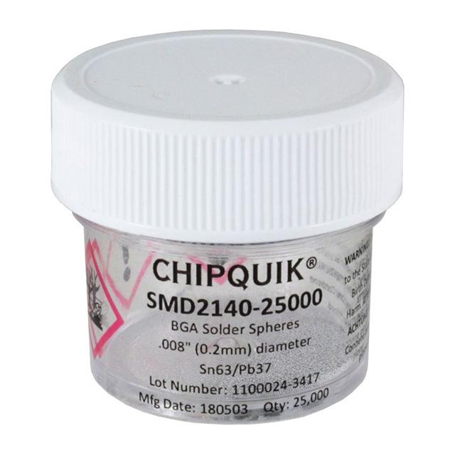 This is manufactured by Chip Quik Inc.. The manufacturer part number is SMD2140-25000. It is assigned with possible HTSUS value of 8311.90.0000. The product is rohs non-compliant. The product is highly reliable with a long-lasting period of 24 months. It comes in solder sphere configuration. It is composed of sn63pb37 (63/37). It has a melting point of 361°f (183°c). The product is designed as a nice jar. In addition, it is reach affected. Its warranty starts from date of manufacture. It is shipped in bulk package . Its typical moisture sensitivity level is not applicable. It has a long 3 weeks standard lead time. Its diameter is 0.008" (0.20mm). It is a leaded process. The product smd2, is a highly preferred choice for users. The product is designated with the ear99 code number.