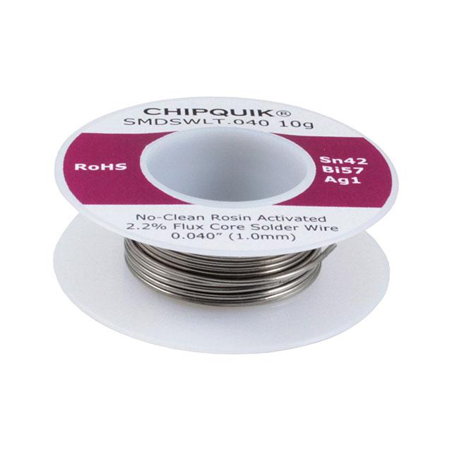 This is manufactured by Chip Quik Inc.. The manufacturer part number is SMDSWLT.040 10G. It is assigned with possible HTSUS value of 8311.30.6000. The product is rohs3 compliant. It comes in wire solder configuration. It is composed of bi57sn42ag1 (57/42/1). It has a melting point of 280°f (138°c). The product is designed as a nice spool, 0.35 oz (10g). In addition, it is reach unaffected. It is shipped in bulk package . Moreover, the product has a wire gauge of 18 awg, 19 swg. Its typical moisture sensitivity level is not applicable. It has a long 4 weeks standard lead time. Its diameter is 0.040" (1.02mm). It is a lead free process. The product smd, is a highly preferred choice for users. It is a no-clean, rosin activated (ra) flux. Moreover, it corresponds to smdsw, a base product number of the product. The product is designated with the ear99 code number.