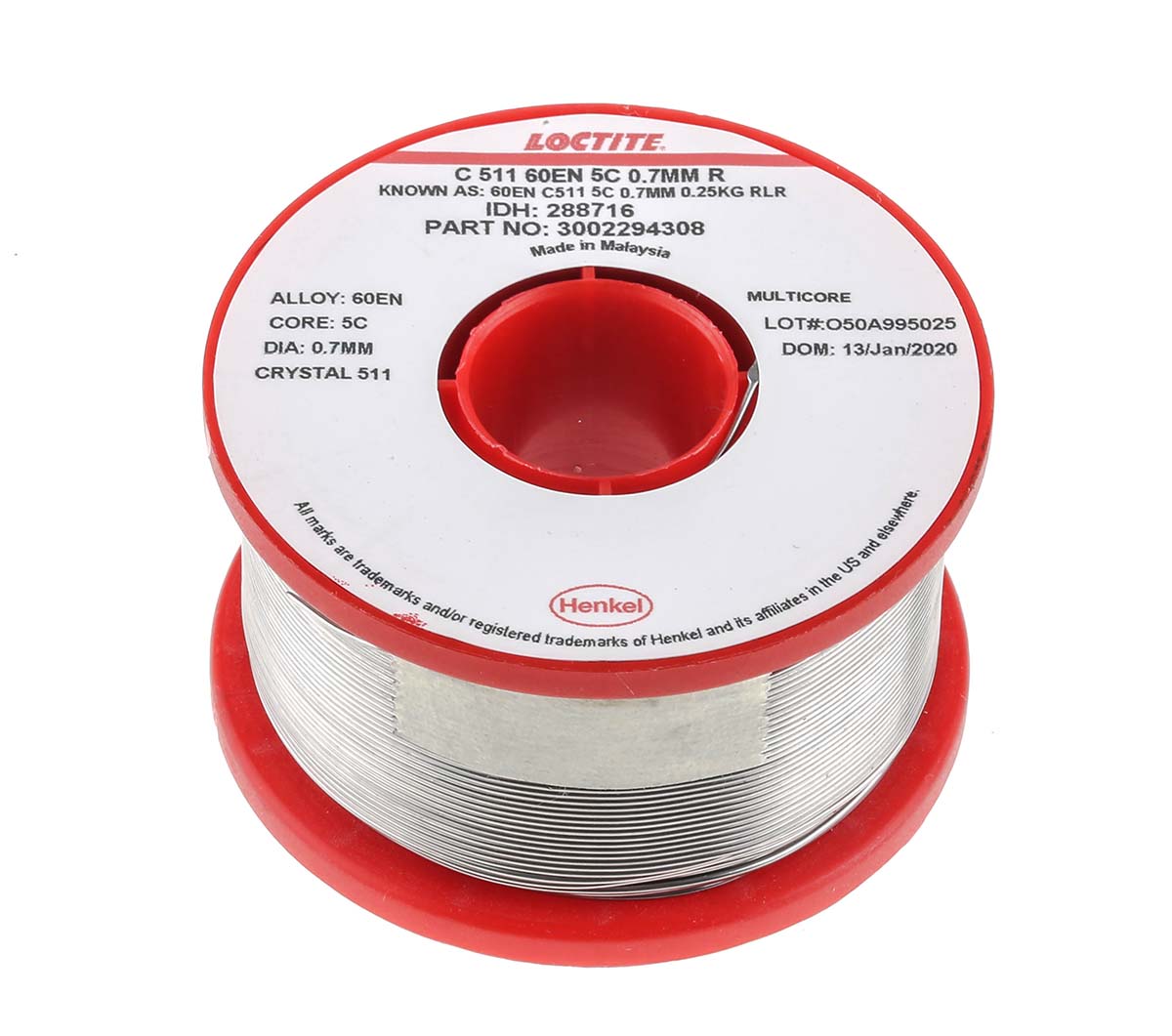 This is 0.7mm Wire Lead solder +183°C Melting Point manufactured by Multicore. The manufacturer part number is 288716. It has 60% tin . It is made using 40% lead . It has a melting point of 183 → 188°c. The product is in wire form . The wire has 0.7mm diameter. It has a model number c511. It is a water wash flux. Its flux content is about 3% . The overall weight of the product is about 250g .