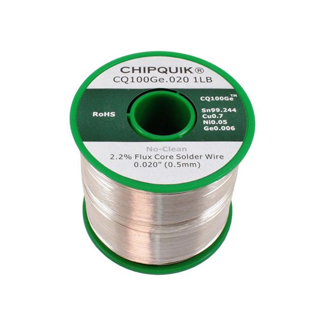 This is manufactured by Chip Quik Inc.. The manufacturer part number is CQ100GE.020 1LB. It is assigned with possible HTSUS value of 8311.90.0000. The product is rohs3 compliant. It comes in wire solder configuration. It is composed of sn99.244cu0.7 (ni0.05/ge0.006). It has a melting point of 441°f (227°c). The product is designed as a nice spool, 1 lb (454 g). In addition, it is reach unaffected. It is shipped in bulk package . Its typical moisture sensitivity level is 1 (unlimited). It has a long 4 weeks standard lead time. Its diameter is 0.020" (0.51mm). It is a lead free process. It is a no-clean flux. Moreover, it corresponds to cq100g, a base product number of the product. The product is designated with the ear99 code number.