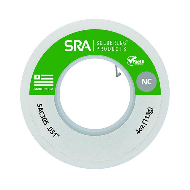 This is manufactured by SRA Soldering Products. The manufacturer part number is WBNCSAC31-4OZ. It is assigned with possible HTSUS value of 8311.30.3000. The product is rohs non-compliant. It comes in wire solder configuration. It is composed of sn96.5ag3cu0.5 (96.5/3/0.5). It has a melting point of 430°f (221°c). The product is designed as a nice spool, 4 oz (113.40g). In addition, it is reach unaffected. The sra soldering products's product offers user-desired applications. Moreover, the product has a wire gauge of 20 awg, 21 swg. Its typical moisture sensitivity level is 1 (unlimited). It has a long 5 weeks standard lead time. Its diameter is 0.031" (0.79mm). It is a lead free process. It is a no-clean flux. In addition, spool is the available packaging type of the product. Moreover, it corresponds to wbncsa, a base product number of the product. The product is designated with the ear99 code number.