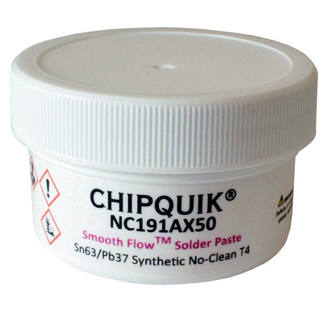 This is manufactured by Chip Quik Inc.. The manufacturer part number is NC191AX50. It is assigned with possible HTSUS value of 3810.10.0000. The product is rohs non-compliant. The product is highly reliable with a long-lasting period of 12 months. It comes in solder paste configuration. It is composed of sn63pb37 (63/37). It has a melting point of 361°f (183°c). The product is designed as a nice jar, 1.76 oz (50g). In addition, it is reach affected. Its warranty starts from date of manufacture. It offers storage features at 37°f ~ 46°f (3°c ~ 8°c). It is shipped in bulk package . Its typical moisture sensitivity level is 1 (unlimited). It has a long 4 weeks standard lead time. It is a leaded process. The product smooth flow™, is a highly preferred choice for users. It is a no-clean flux. The mesh is a 4 type of mesh. Moreover, it corresponds to nc191, a base product number of the product. The product is designated with the ear99 code number.