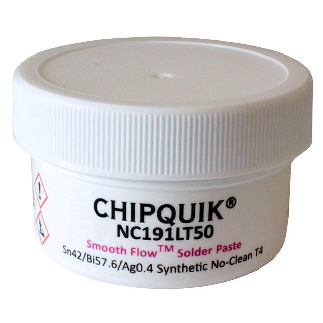 This is manufactured by Chip Quik Inc.. The manufacturer part number is NC191LT50. It is assigned with possible HTSUS value of 3810.10.0000. The product is rohs3 compliant. The product is highly reliable with a long-lasting period of 6 months. It comes in solder paste configuration. It is composed of bi57.6sn42ag0.4 (57.6/42/0.4). It has a melting point of 280°f (138°c). The product is designed as a nice jar, 1.76 oz (50g). In addition, it is reach unaffected. Its warranty starts from date of manufacture. It offers storage features at 37°f ~ 46°f (3°c ~ 8°c). The chip quik inc.'s product offers user-desired applications. Its typical moisture sensitivity level is 1 (unlimited). It has a long 4 weeks standard lead time. It is a lead free process. The product smooth flow™, is a highly preferred choice for users. It is a no-clean flux. In addition, bulk is the available packaging type of the product. The mesh is a 4 type of mesh. Moreover, it corresponds to nc191, a base product number of the product. The product is designated with the ear99 code number.
