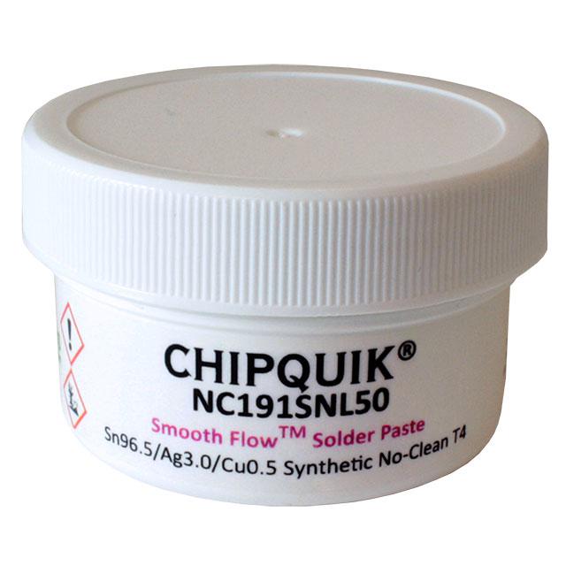 This is manufactured by Chip Quik Inc.. The manufacturer part number is NC191SNL50. It is assigned with possible HTSUS value of 3810.10.0000. The product is rohs3 compliant. The product is highly reliable with a long-lasting period of 6 months. It comes in solder paste configuration. It is composed of sn96.5ag3cu0.5 (96.5/3/0.5). It has a melting point of 422 ~ 428°f (217 ~ 220°c). The product is designed as a nice jar, 1.76 oz (50g). In addition, it is reach unaffected. Its warranty starts from date of manufacture. It offers storage features at 37°f ~ 46°f (3°c ~ 8°c). The chip quik inc.'s product offers user-desired applications. Its typical moisture sensitivity level is 1 (unlimited). It has a long 4 weeks standard lead time. It is a lead free process. The product smooth flow™, is a highly preferred choice for users. It is a no-clean flux. In addition, bulk is the available packaging type of the product. The mesh is a 4 type of mesh. Moreover, it corresponds to nc191, a base product number of the product. The product is designated with the ear99 code number.