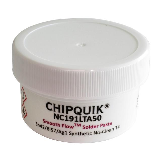 This is manufactured by Chip Quik Inc.. The manufacturer part number is NC191LTA50. It is assigned with possible HTSUS value of 3810.10.0000. The product is rohs3 compliant. The product is highly reliable with a long-lasting period of 12 months. It comes in solder paste configuration. It is composed of bi57sn42ag1 (57/42/1). It has a melting point of 279°f (137°c). The product is designed as a nice jar, 1.76 oz (50g). In addition, it is reach unaffected. Its warranty starts from date of manufacture. It offers storage features at 37°f ~ 46°f (3°c ~ 8°c). It is shipped in bulk package . Its typical moisture sensitivity level is 1 (unlimited). It has a long 4 weeks standard lead time. The product smooth flow™, is a highly preferred choice for users. It is a no-clean flux. The mesh is a 4 type of mesh. Moreover, it corresponds to nc191, a base product number of the product. The product is designated with the ear99 code number.