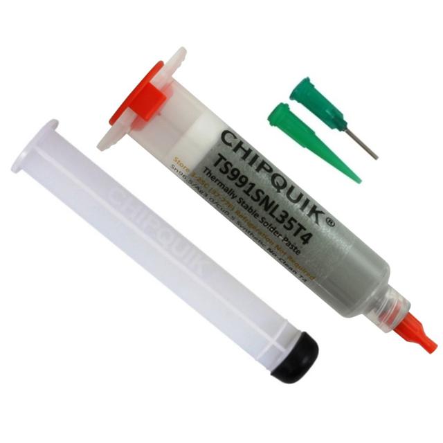This is manufactured by Chip Quik Inc.. The manufacturer part number is TS991SNL35T4. It is assigned with possible HTSUS value of 3810.10.0000. The product is rohs3 compliant. The product is highly reliable with a long-lasting period of 12 months. It comes in solder paste configuration. It is composed of sn96.5ag3cu0.5 (96.5/3/0.5). It has a melting point of 423°f (217°c). The product is designed as a nice syringe, 1.23 oz (34.869g). In addition, it is reach unaffected. Its warranty starts from date of manufacture. It offers storage features at 37°f ~ 77°f (3°c ~ 25°c). It is shipped in bulk package . Its typical moisture sensitivity level is not applicable. It has a long 4 weeks standard lead time. The product chipquik®, is a highly preferred choice for users. It is a no-clean flux. The mesh is a 4 type of mesh. The product is designated with the ear99 code number.