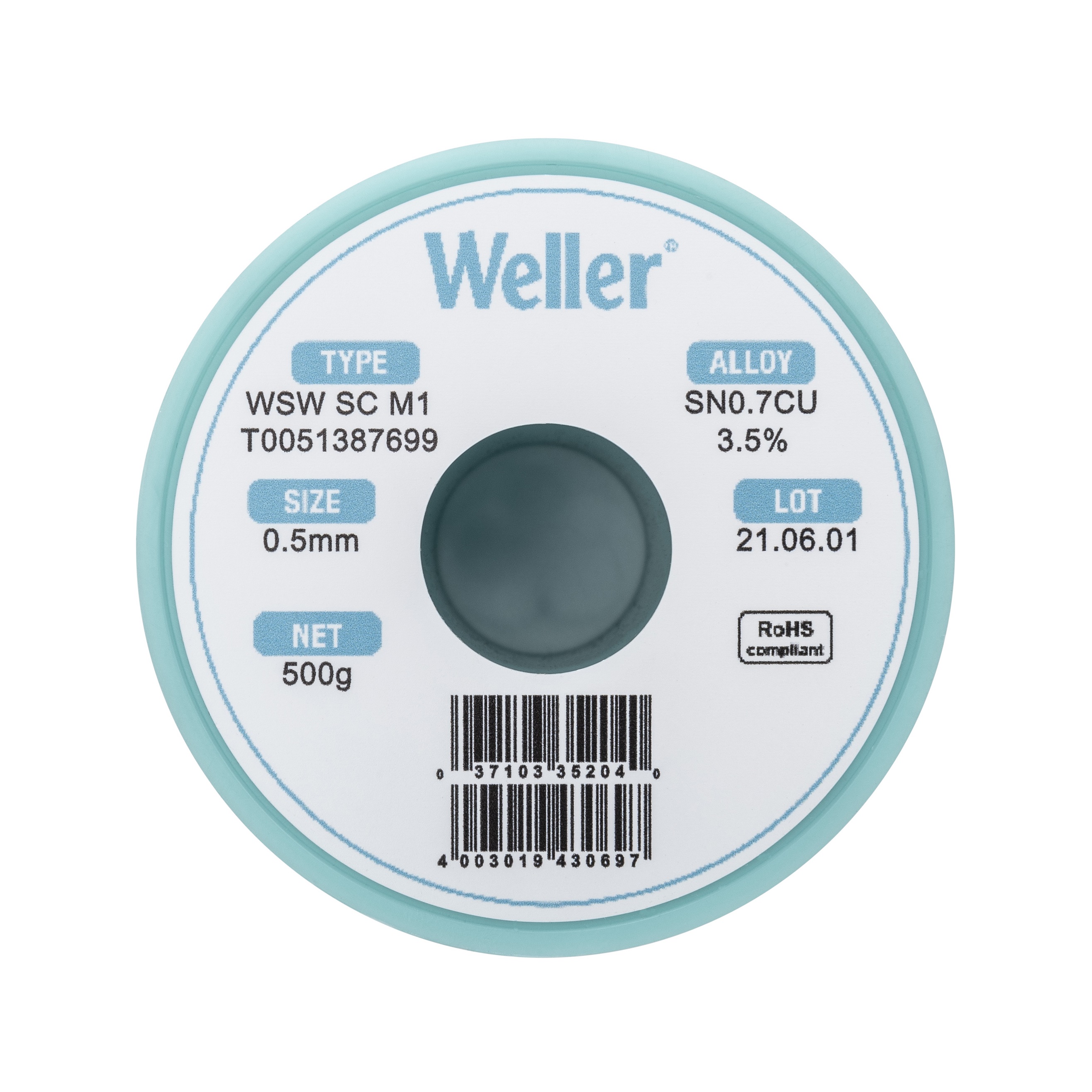 This is Wire 0.5mm Solder 227°C Melting Point manufactured by Weller. The manufacturer part number is T0051387699. It has 99.3% tin . It is made using 0% lead . It has a melting point of 228°c. The product is in wire form . It includes 0.7% of copper . The wire has 0.5mm diameter. It has a model number wsw sc m1. It is a m1 flux. It includes 0% silver . Its flux content is about 3.5% . The overall weight of the product is about 500g .