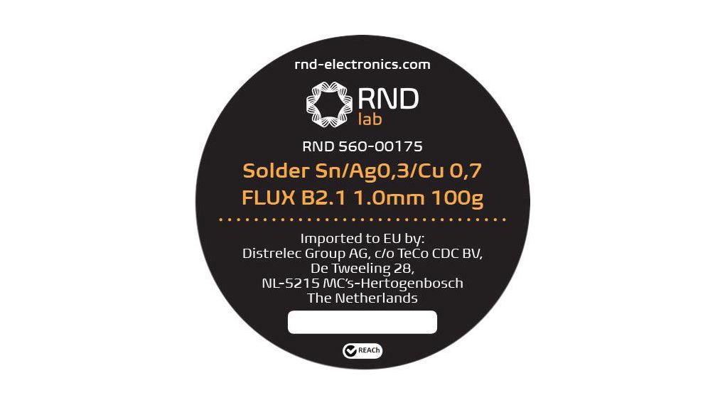 This is Solder Sn/Ag0.3/Cu 0.7 FLUX B2.1 1.0 mm manufactured by RND. The manufacturer part number is RND 560-00175.