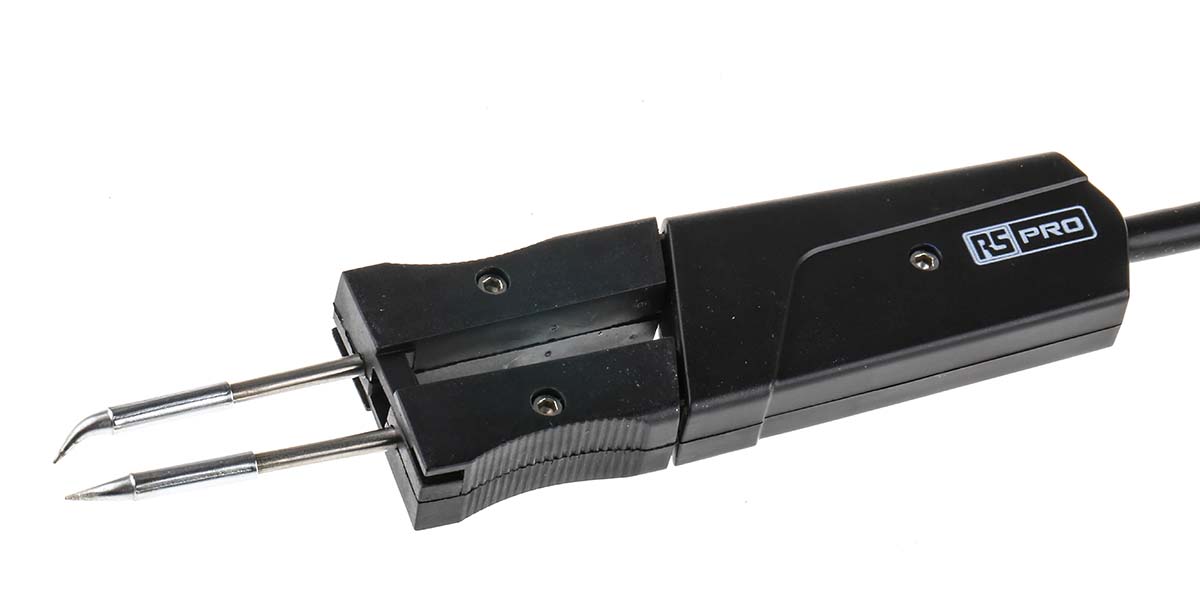 This is Soldering Tweezers manufactured by RS PRO. The manufacturer part number is 179-0023. This product carries 80w. It has a/an soldering tweezers type soldering accessory .