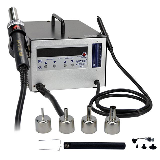 This is manufactured by SRA Soldering Products. The manufacturer part number is AO852A++. It is assigned with possible HTSUS value of 8515.19.0000. The product is rohs compliant. The possible product's input voltage is 110v. It comes in rework (hot air) configuration. In addition, it is reach unaffected. The product is also supplied with hot air gun holder, power cord, vacuum suction pen. It is supplied with 1 channels. The product's typical temperature range incudes 212°f ~ 896°f (100°c ~ 480°c). The sra soldering products's product offers user-desired applications. Its typical moisture sensitivity level is 1 (unlimited). It has a long 15 weeks standard lead time. The supplied tips/nozzles are 1124, 1130, 1196, 1197, g001. Furthermore, it has 852a++ base unit. The product aoyue®, is a highly preferred choice for users. This product carries 500w. It is supplied with a robust [Control/Display] control/display. The plug is a highly reliable included, not specified with long service life. In addition, box is the available packaging type of the product. Moreover, it corresponds to ao852a, a base product number of the product. The product is designated with the ear99 code number.