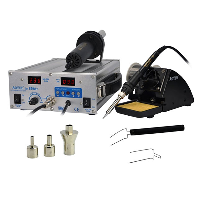 This is manufactured by SRA Soldering Products. The manufacturer part number is AO899A+. The tip cleaner has also integrated with not included. It is assigned with possible HTSUS value of 8515.19.0000. The product is rohs compliant. The possible product's input voltage is 110v. It comes in rework (hot air) configuration. In addition, it is reach unaffected. The product is also supplied with power cord. It is supplied with 2 channels. The product's typical temperature range incudes 212°f ~ 896°f (100°c ~ 480°c). The sra soldering products's product offers user-desired applications. Its typical moisture sensitivity level is 1 (unlimited). The supplied tips/nozzles are included, not specified. It is also supplied with included, not specified. The splendid features of the product include ceramic heater. Furthermore, it has 899a+ base unit. The product aoyue®, is a highly preferred choice for users. This product carries 600w. It is supplied with a robust [Control/Display] control/display. The plug is a highly reliable included, not specified with long service life. Furthermore, the output voltage is 24v. In addition, box is the available packaging type of the product. Moreover, it corresponds to ao899a, a base product number of the product. The product is designated with the ear99 code number.