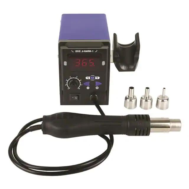 This is manufactured by ECG. The manufacturer part number is J-HARW-1. It is assigned with possible HTSUS value of 8515.19.0000. The possible product's input voltage is 110 ~ 127vac. It comes in rework (hot air), soldering configuration. In addition, it is vendor undefined. It is supplied with 1 channels. The product's typical temperature range incudes 212°f ~ 896°f (100°c ~ 480°c). It is supplied with a robust [Control/Display] control/display. It is shipped in retail package package . Its typical moisture sensitivity level is not applicable. The supplied tips/nozzles are included, not specified. The splendid features of the product include esd safe. This product carries 700w. The product is designated with the ear99 code number.