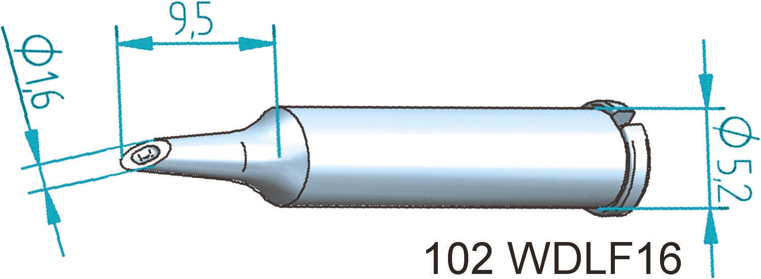This is 1.6 mm Straight Conical Hoof Soldering Iron Tip manufactured by Ersa. The manufacturer part number is 102WDLF16. Its tip is of serie 102 series . The tip is designed with a straight hoof shape. The tip is 1.6 mm in size. The product is highly suitable for i-tool.