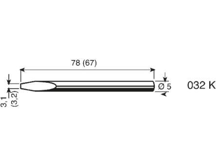 This is 3.1 mm Straight Chisel Soldering Iron Tip for use with ERSA 30S Soldering Iron manufactured by Ersa. The manufacturer part number is 0032KD/SB. Its tip is of 32 ersadur series . The tip is designed with a straight chisel shape. The tip is 3.1 mm in size. The product is highly suitable for ersa 30s soldering iron.