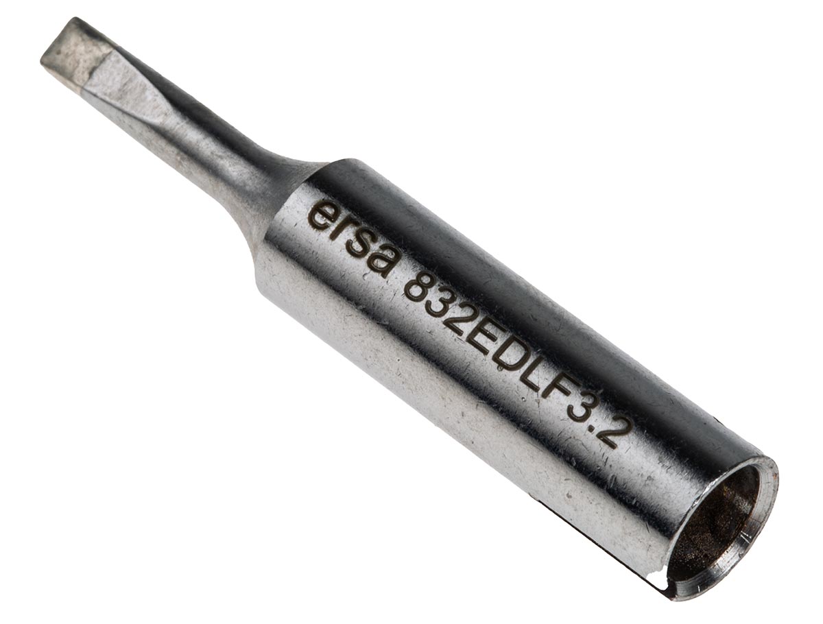 This is 3.2 mm Chisel Soldering Iron Tip manufactured by Ersa. The manufacturer part number is 0832EDLF/SB. Its tip is of serie 832 series . The tip is designed with a chisel shape. The tip is 1 x 3.2 mm in size. The product is highly suitable for power tool.